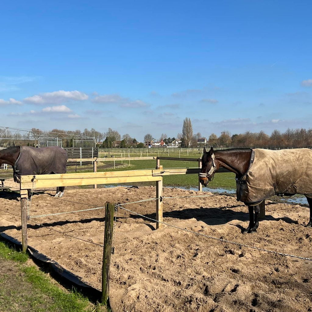 ‘Het vermoeden bestaat dat ik ben aangereden maar dat onderzoek loopt nog. Gelukkig dat de twee paarden samen op de trailer stonden, dat heeft ze gered. Ik ben in de trailer geklommen en heb ze los kunnen maken. Ter observatie zijn ze een nacht in de dierenkliniek in Roosendaal gebleven en daarna gelukkig heel kalm in een kleine vrachtwagen naar huis vervoerd. Het ene paard heeft wat schaafwonden op het hoofd, het andere lijkt wat last van z’n nek te hebben. Gelukkig lopen ze nu rustig in de paddock.’