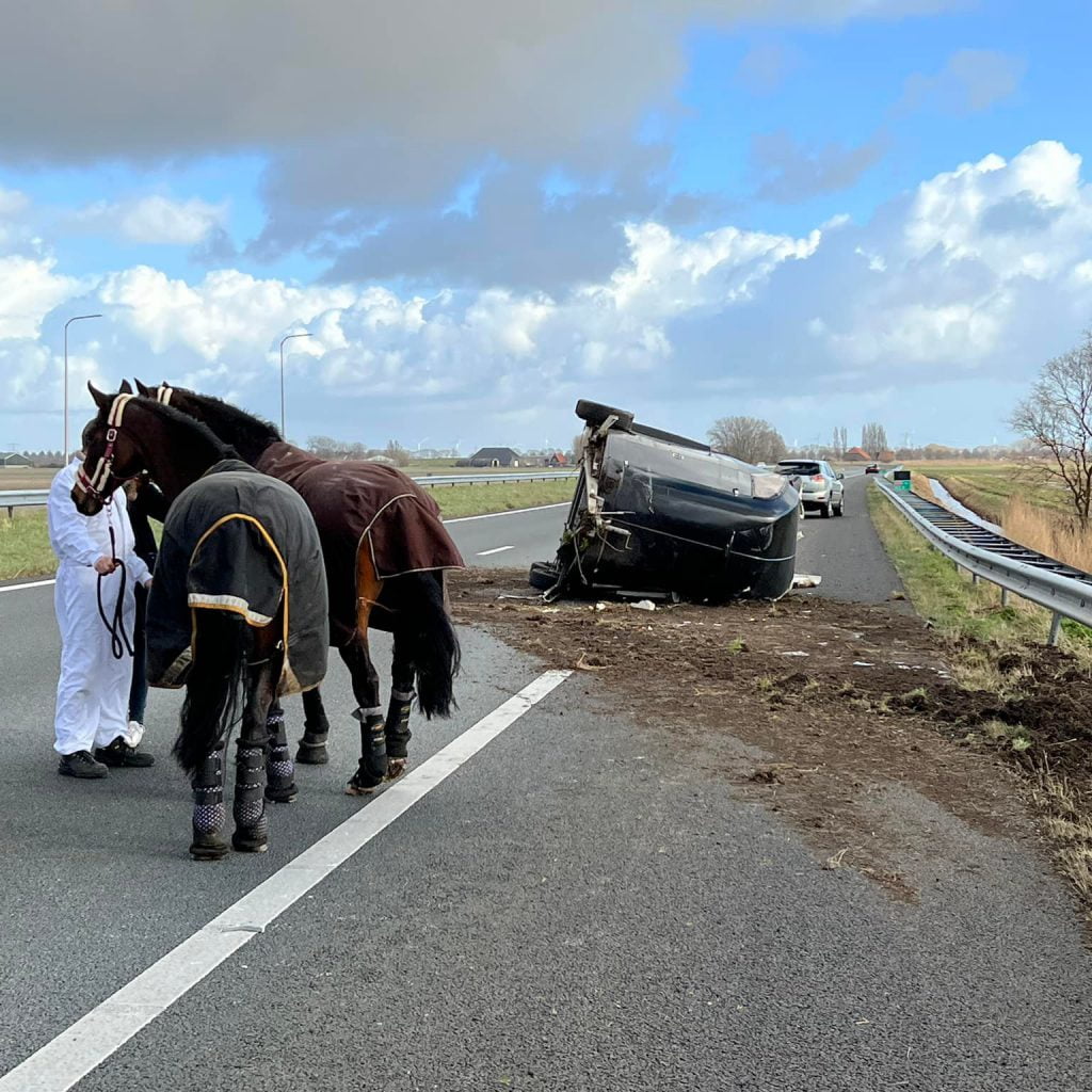 Je hoopt dat het nooit gebeurt maar het gebeurde wel! Dressuuramazone Fleur de Vries uit Klaaswaal was vrijdagmiddag met haar twee paarden in de trailer op weg naar de hoefsmid toen er iets gebeurde waardoor haar trailer twee keer over de kop sloeg. Op de A59 bij Fijnaart, ter hoogte van tankstation De Fendert. Er was bij het ongeluk ook een Audi betrokken die flinke beschadigingen opliep. Fleur de Vries zoekt nu getuigen.