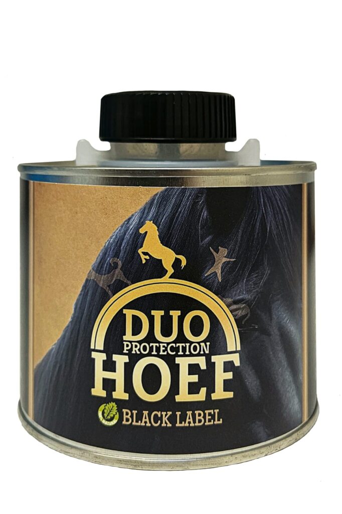 De black label-versie van Duo Hoef is speciaal voor pony’s en paarden met donkere hoeven ontwikkeld. ‘Natuurlijk opgekleurd in het zwart, het is echt megaspul voor paarden met donkere hoeven. We leveren het in de gebruikelijke verpakkingen van 500ml, goed voor ongeveer twee maanden,’ zegt Gerrit-Jan van Enck.
