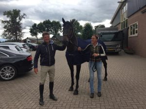 Harmina Holwerda had een goede dag en zat met drie paarden in de prijzen, in het M1 was het de nakomeling van Jasper 366, Vigo van de Wietze. ,,Vigo rijdt ik voor Duitse eigenaren Wolfgang en Susanne Depping“, aldus Holwerda. ,,Ik heb hem vorig jaar voor de Pavo Friso Bokaal gereden en dat ging zo goed dat ik ook mee mocht doen met het EK dressuur voor jonge Friese paarden, en daar zijn we kampioen geworden.”